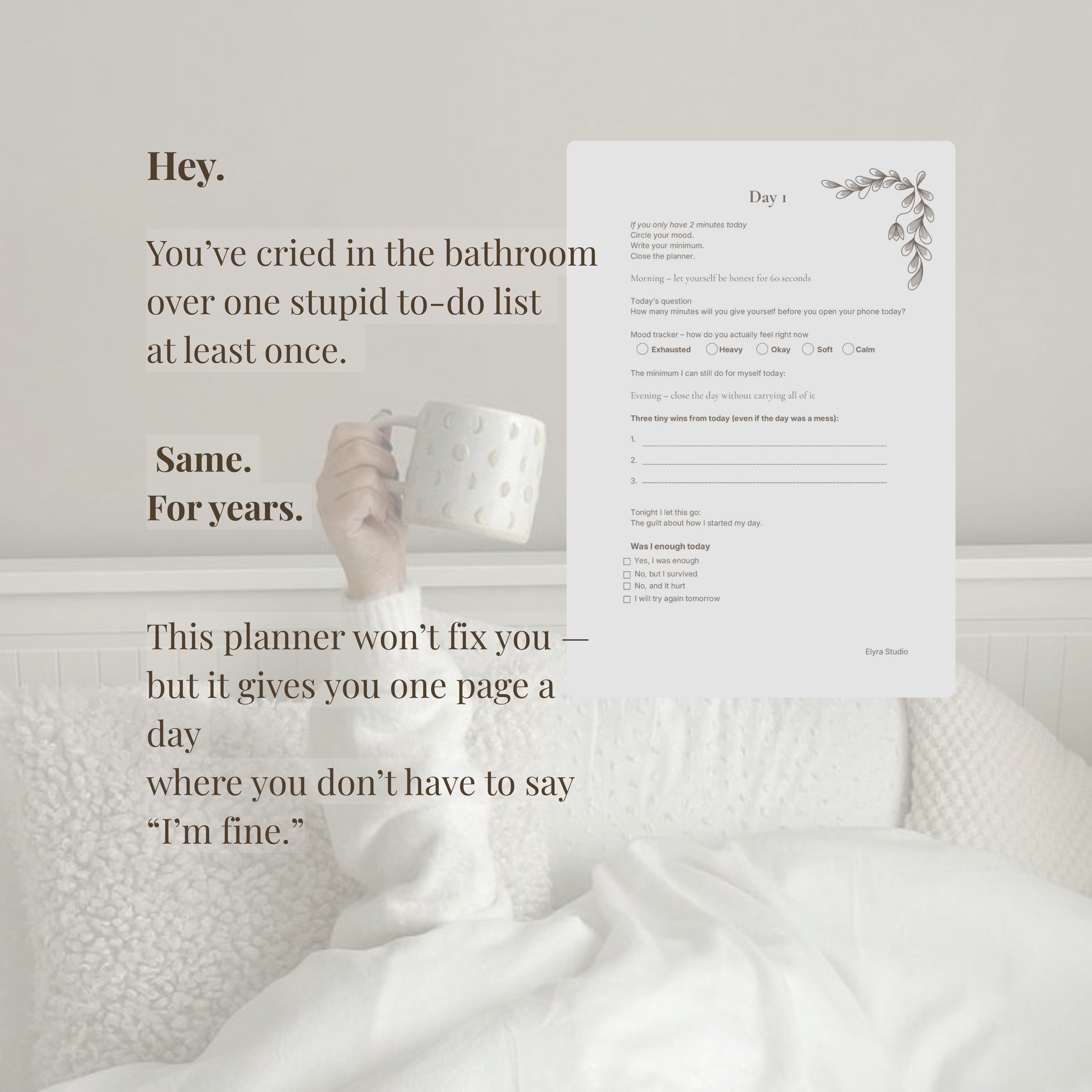 I created this planner because I was tired of tools that made me feel behind and guilty. I did not need another system telling me to be more productive. I needed a softer way to be honest about how I feel.